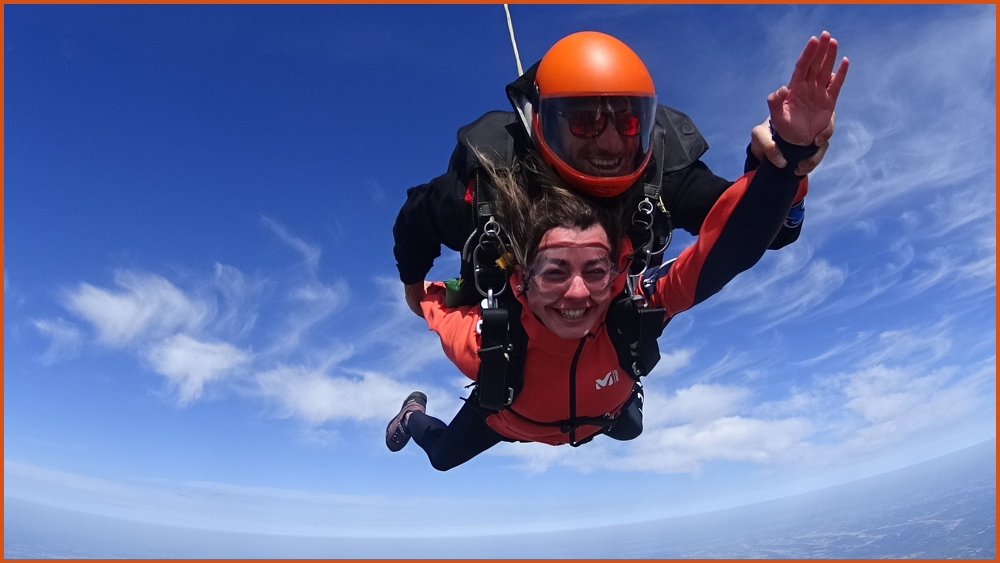 Le saut en tandem est réalisé en biplace avec un moniteur à 4000 mètres d’altitude. 1 minute de chute libre et 5 à 6 minutes sous voile sont réalisés avant un atterrissage en douceur !